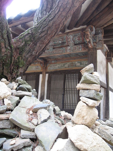 Interior rooms are covered by heavy oiled paper. Similar to blotter desk pads in weight (for those of you old enough to remember those) I do not know if there are wood planks beneath, or if the paper is sitting directly on the ondol flues…next time I am in a traditional hanoak, I will ask.