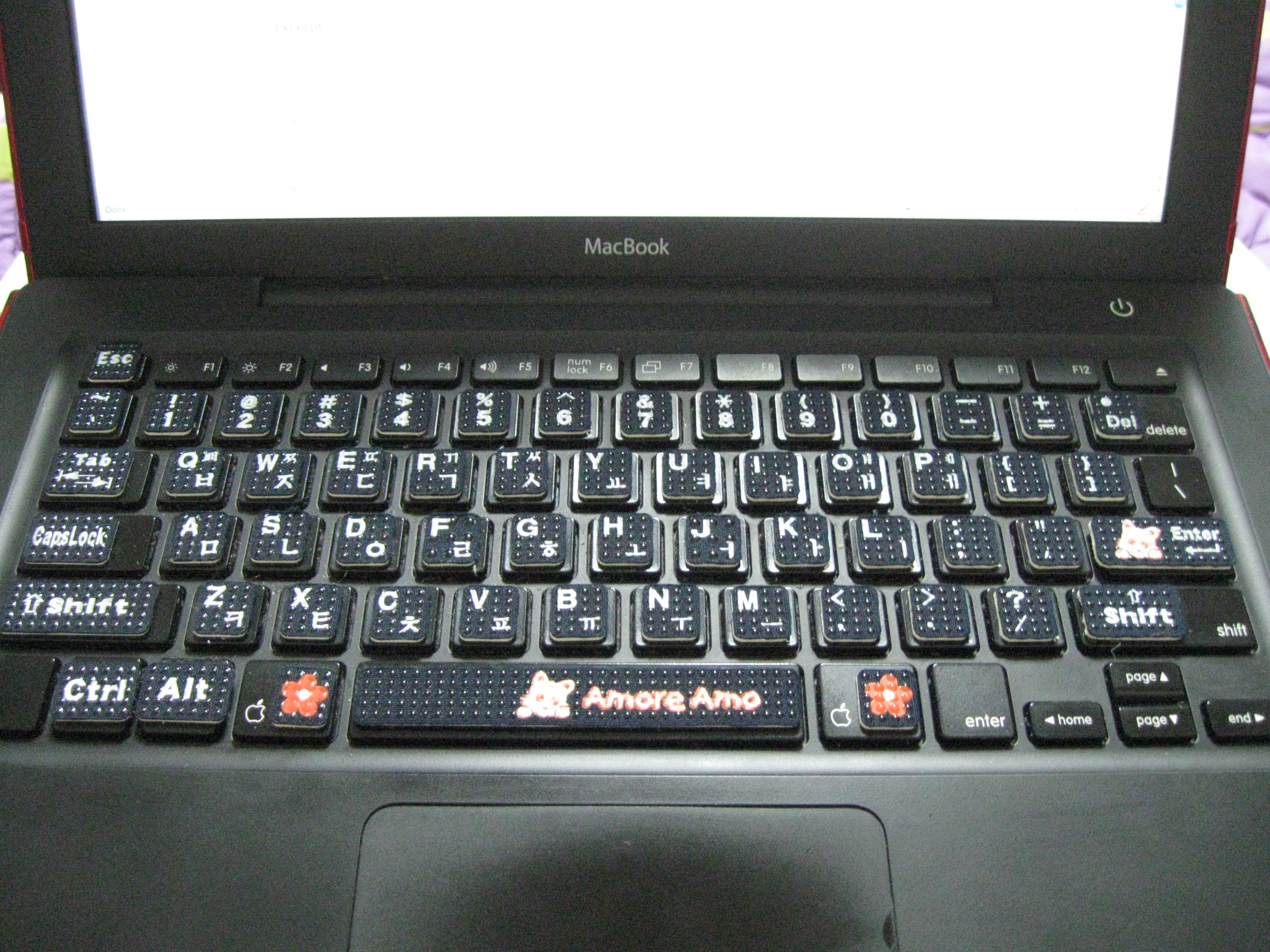 I just bought stickers for my keyboard with the hanguel symbols on them. Most Korean computers have a language switching hot-key, and all the keys are printed with both English and Korean. But this isn’t the case with Macs. They don’t sell a Korean version. So, I got really excited when I saw these keyboard stickers at Alpha office supply store. Myung-Sook, do you need these? I think they only had pink left…