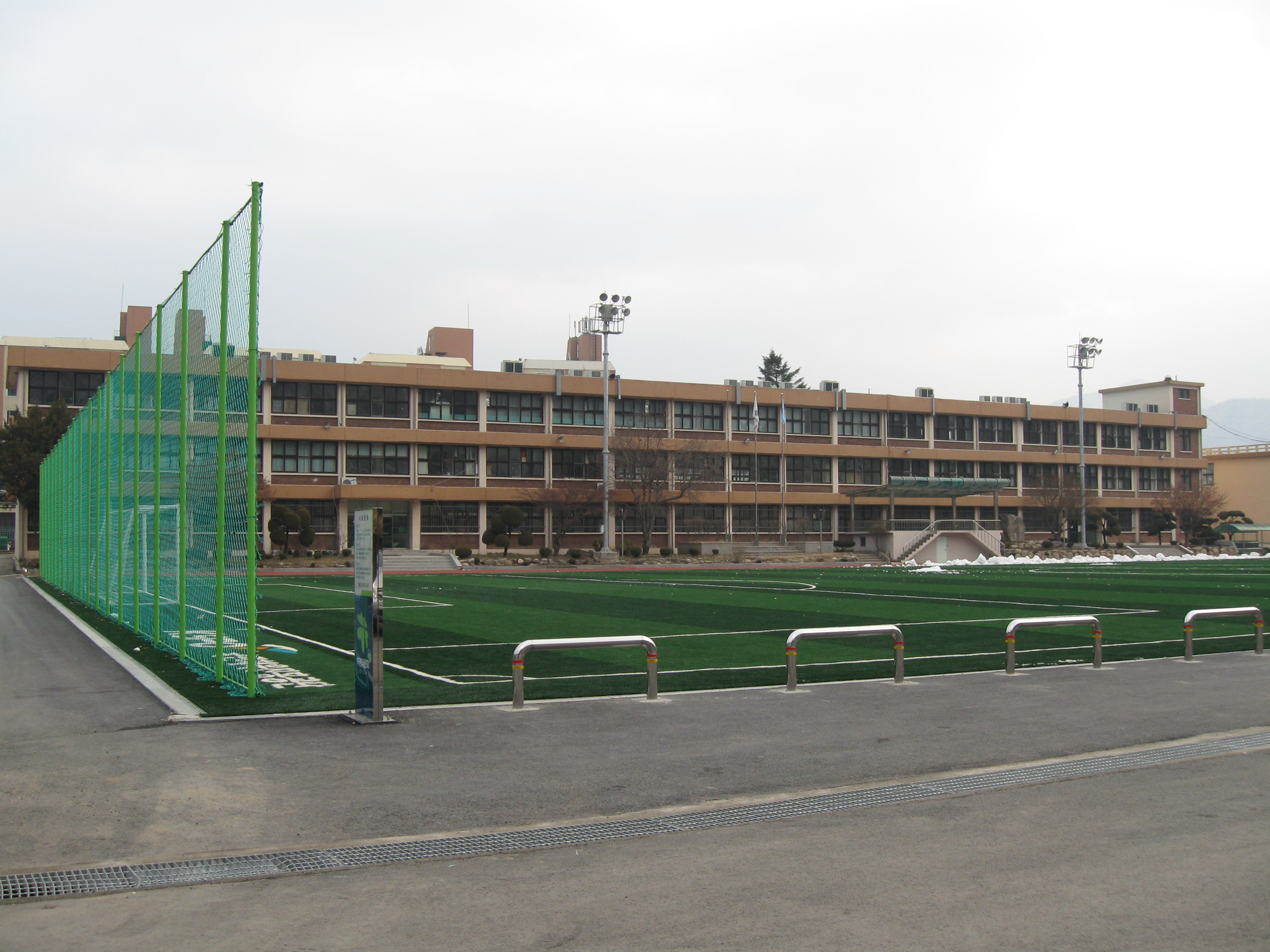 As you can see, it has a brand new astro-turf playing field. The school’s soccer team is a major contender in Korea’s intramural sports program, as is their rowing team. The students here hope they can enter the Olympics one day. The last school didn’t have any intramural sports or any social activities for their students: only lots and lots of test prep classes. A new gymnasium is currently under construction behind the school as well. And, I guess, the school does very well in a national Architecture competition at the end of April every year. (though design is not taught here – maybe it is a 3D rendering competition)