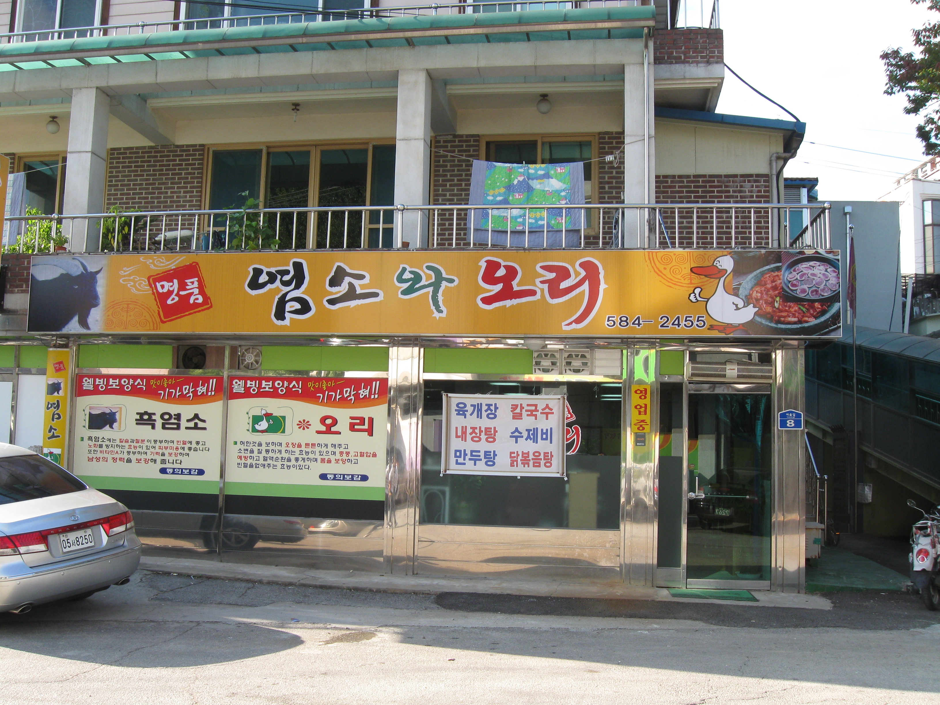 So we don’t have a lot of exotic fish and meat like Anyang did (though there is a place that has a fish truck (which looks like a pick-up truck with fitted tool boxes, only the they aren’t tool boxes but water-filled fish tanks) used to replenish the fresh fish swimming on display. But here is our very own Boshintang restaurant. Much nicer looking than the sad and dirty-looking ones in Seoul. (Good god, this is turning into a 20 beachball post…grrr…)