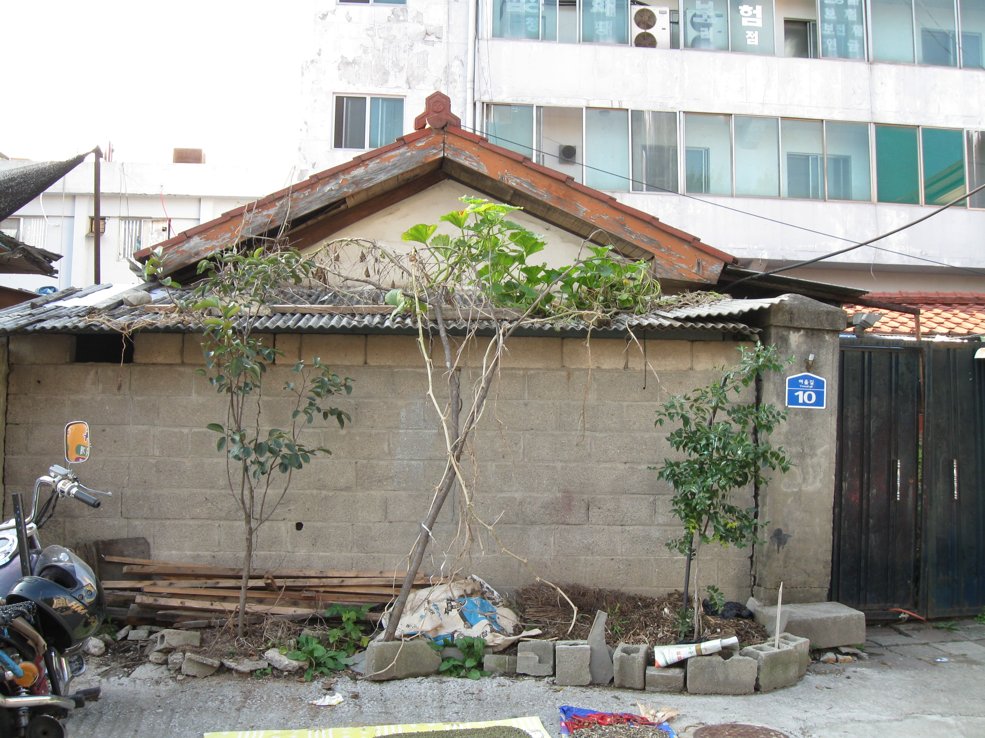 And finally, this is how a lot of Koreans treat the tops of their walls: with jagged, broken bottles set in concrete. A pretty effective no trespassing sign, I’d say.