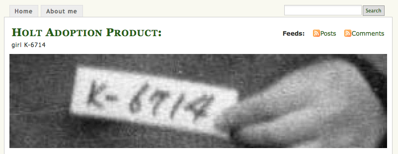 I think the following poem should be required reading by anyone considering international adoption, and it’s a fine companion piece to John Raible’s spoken-word piece on transracial adoption, Better Off, Better Smile. It was written by my KAD sister, Myung-Sook, from her unapologetic and profoundly heartwrenching blog, Holt Adoption Product.