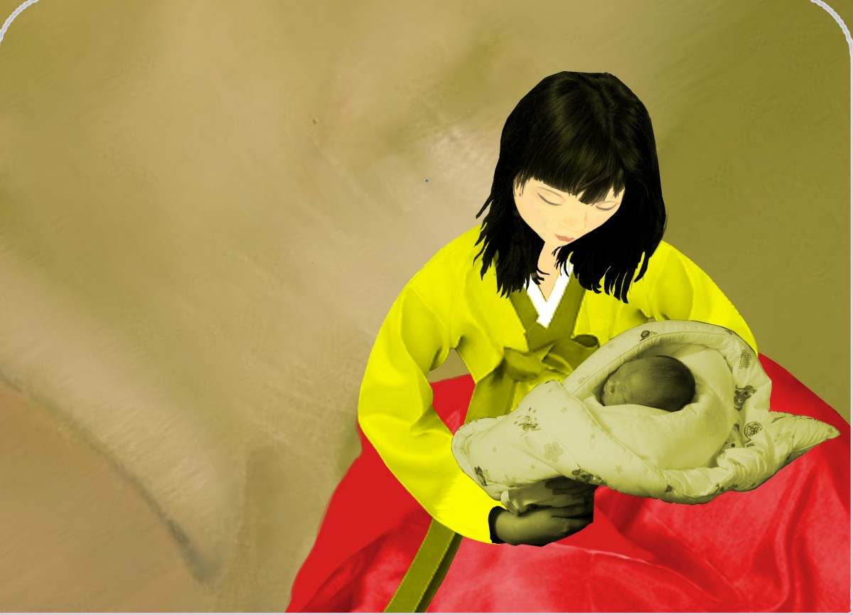 I chose yellow jeogori and red chima because those are the traditional colors ascribed to young women. Of course, I knew that peasants all wore white, but others told me that despite Korea being known as the people in white, young women were still portrayed in literature and paintings as always wearing yellow and red. The problem becomes, how do you portray unwed status in modern times? Even married people in Korea don’t wear their wedding rings…Also how do you represent a beautiful but repressive past with its legacy of stigma and female oppression and justapose it with the consequences for women today? Another person told me that maybe the girl in historical hanbok is akin to having an American dress in colors of the flag. Or I can take that further and say it’s like a girl dressed up in her anti-bellum cotillion hoop skirt ballgown..Anyway, this idea has been round filed, so that’s why I’m showing it to you. But I also think it still had potential -precisely because it IS weird in its Korean context. So instead of washing out all the detracting opinions, I think what I really needed to do is push it further into controversy. (nobody understood my other art project, for example) The other constraint was that at the end of the day it must be beautiful, for the cursory view, the superficial view, as it was to actually be a decorative piece on an item that people will carry around with them.