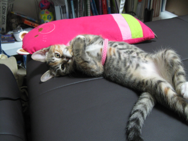 The tryptophan seems to work a little right after she eats, but she still has this explosion of biting energy later. I’m playing around with the dosage. It would be nice if I could just give her a nightcap, but it needs to go with food and she’s already eaten much earlier.