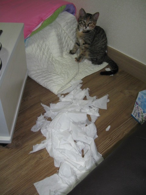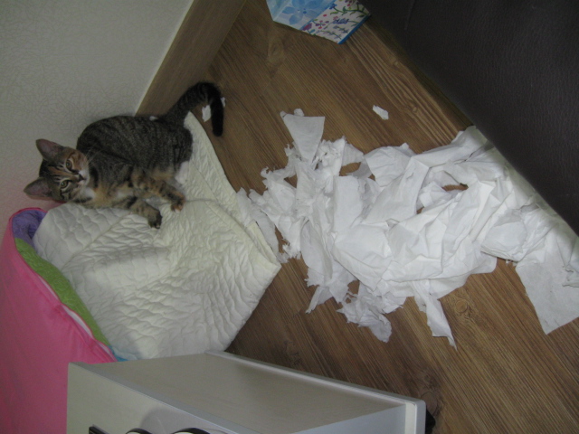 I don't know what she has against Kleenex, but no box is safe around her!she likes walking around with the feather duster - even though it's the same size as her!my arm is feeling this box's paindreaming of a suntanposing for the beefcake shotnot above flirting